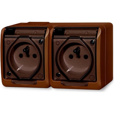 Hnědá dvojzásuvka na povrch 5322-06, 250 V, 16 A, IP 44 Vypínače a zásuvky typové řady GALATEA určené k montáži na povrch s krytím IP 44 a mechanickou odolností IK 07 jsou navrženy pro použití v náročnějších podmínkách se zvýšenou vlhkostí nebo se zvýšeným výskytem...