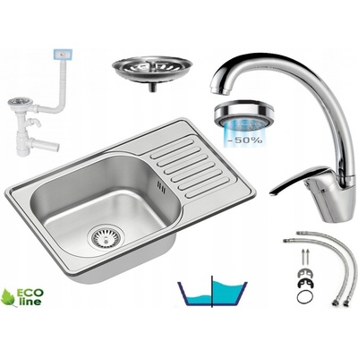 SADA PŘIPRAVENÁ K MONTÁŽI - dřez - baterie + sada přípojek - sifon s možností připojení pračky/myčky, - montážní sada, klipy - těsnění NA PŘÁNÍ ZÁKAZNÍKA VYŘÍZNEME OTVOR POD...