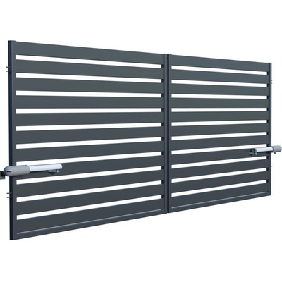Díky nerušené jednoduché linii je systém NICE oblíbený u moderní architektury. K dvoukřídlé bráně Nice je dodáván elektrický pohon, který najdete v balení. Toto kovové oplocení NELZE přizpůsobit na míru. Rozměry jsou pevně dané výrobcem. Dvoukřídlá brána s pohonem...
