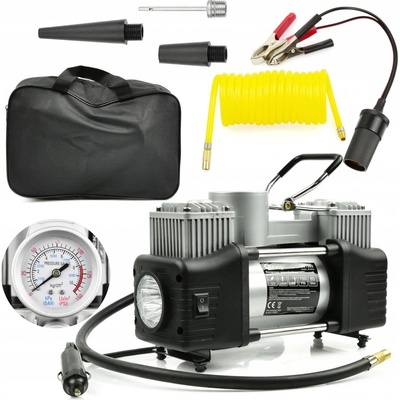 Kompresor dvoupístový 12V - 11 BAR Velice výkonný dvoupístový vzduchový kompresor na 12V vybavený měřičem tlaku. K nafouknutí pneu 205/70/R15 postačí pouhé 2 minuty. Tento...
