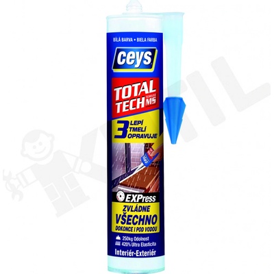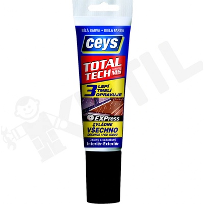 CEYS TOTAL TECH EXPRESS víceúčelový tmel. Popis: TOTAL TECH EXPRESS lepí, tmelí a opravuje všechny materiály v interiéru i exteriéru, dokonce i pod vodou. Lepí s okamžitou...