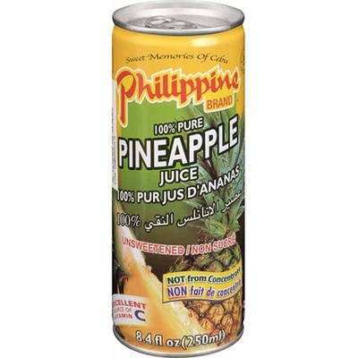 100% čisté. Ne z koncentrátu. Vynikající zdroj vitamínu C. Sladké vzpomínky na Cebu. 100% ananasový džus se získává ze sladkého celého ananasu vysočiny přímo do plechovky. Je...