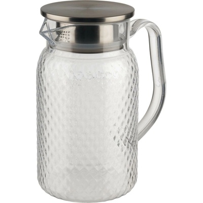 Džbánek na džus vyrobený z průhledného skla. Poklop z nerezové oceli. Vhodný do myčky.