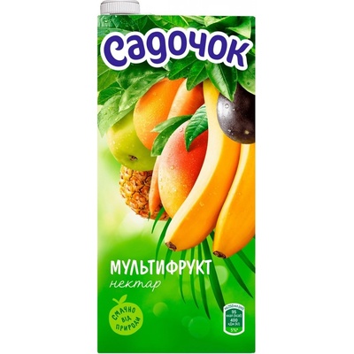 Džus Multifruit s dužinou 0,95L Sadochek Složení: jablečná šťáva 35 %, mrkvové pyré 5 %, ovocná šťáva 5 %, (pomeranč, ananas, mandarinka, hroznové víno, hruška, jablko,...