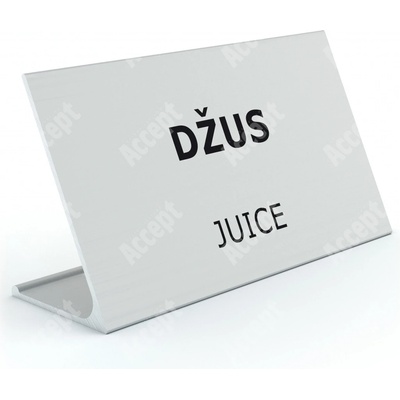 Informační stojánek je vyroben ze stříbrně nebo zlatě eloxovaného hliníkového (alu) profilu. Přední plocha profilu je polepena černou matnou fóliovou grafikou.