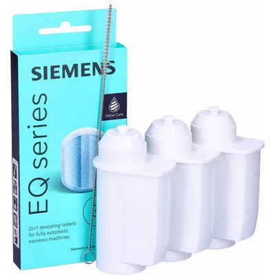 Sada pro kávovary Siemens Bosch: Sada obsahuje: ✅ vodní filtr AquaFloow Intensive – 3 kusy ✅ originální odvápňovací tablety Siemens / Bosch TZ80002 ✅ čistí / vytěrák...