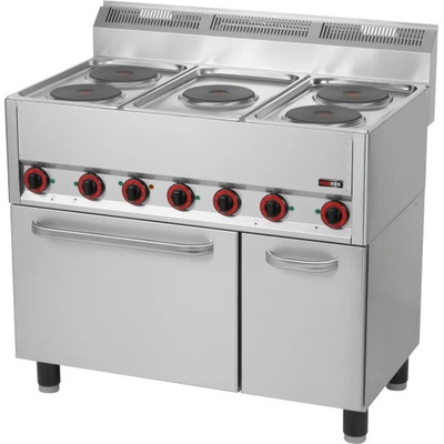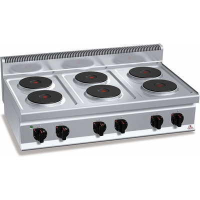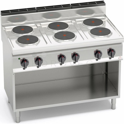 Parametry: - Elektrický třífázový - 6x plotna čtvercová 2,6 kW - Rozměr plotny 220 x 220 mm - Trouba statická pro GN 2/1 - Příkon trouby 5,0 kW, Napětí trouby 400 V -...