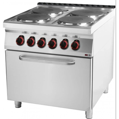 Parametry: - Elektrický třífázový - 4x plotna čtvercová 2,6 kW - rozměr plotny 220 x 220 mm - Trouba statická pro GN 2/1 - Příkon trouby 5,0 kW, Napětí trouby 400 V -...