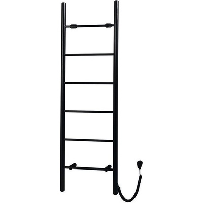 Elektrický sušák ručníků do moderního interiéru - v matně černé barvě jsou nejen trubky a uchycení, ale i napájecí kabel a elektrická zástrčka. Díky hloubce 10 cm nezabere...