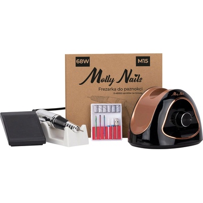 Profesionální Bruska na nehty MOLLYNAILS M15 68W Silná + Frézy NosičBruska na nehty M15 Molly Nails pro manikúru a pedikúru 68W černo-zlatá Bruska Molly Nails M15 je způsob, jak rychle a efektivně pracovat s každou stylistkou! Profesionální, vysoce kvalitní bruska s...