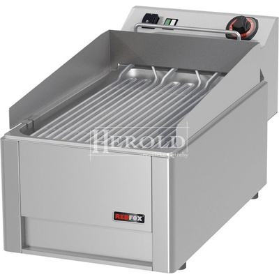 - Celonerezové provedení. - Potravina se aplikuje přímo na těleso, tuk z pokrmu stéká do GN s vodou. - Materiál tělesa AISI 304 L. - Vyjímatelná nádoba GN 1/1 o hloubce 6,5...