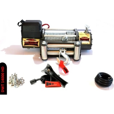 Sada k navijáku TRUCK Dragon Winch Elektrický DWT 14000 HD obsahuje: - ocelové lano - hák - ovládací souprava s kabely - válečková vodítka - kabelový dálkový ovladač -...