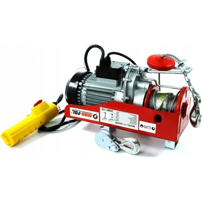 Elektrický lanový naviják 400/800 230V MAR-POL Parametry: Napětí: 230 V Nosnost bez pomocné kladky: max. 400 kg Zdvih bez pomocné kladky: max. 12 m Nosnost s pomocnou kladkou:...