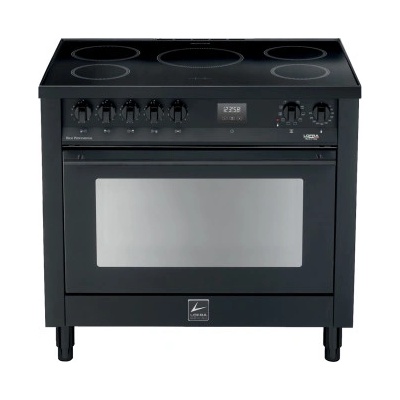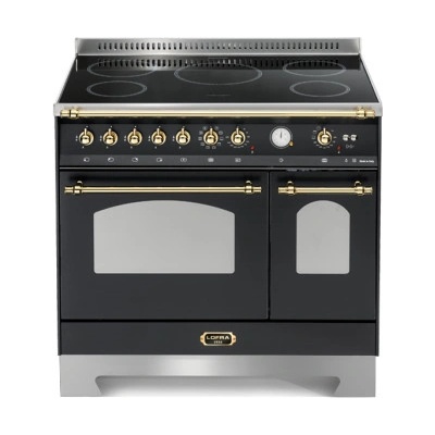 Retro sporák s indukční deskou Lofra RNMD96MFTE/5I, volně stojící, indukční deska a dvakrát elektrická trouba, barva černý mat, šíře 90 cm, 2 úrovně teleskopických výsuvů v...