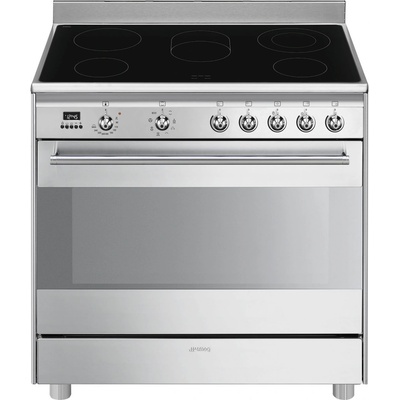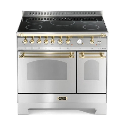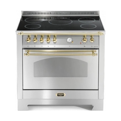 Retro sporák s indukční deskou Lofra RSG96MFT/5I, volně stojící, indukční deska a elektrická trouba, barva nerez, šíře 90 cm, 2 úrovně teleskopických výsuvů, 5 indukčních zón,...