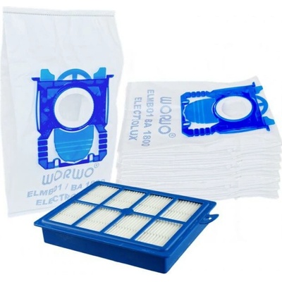 Sáčky a HEPA filtr pro vysavače ELECTROLUX - Clario Z 1915, 1925, 1935,1943 ELECTROLUX 8+1ksSada náhradních sáčků Worwo ELMB01 (dříve ELMB01K) a HEPA filtru je určena pro...