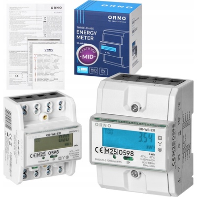 Elektroměr 3-fázový 80A, MID, 3 moduly na DIN lištu Orno OR-WE-531 ?? Třífázový elektroměr s maximálním proudem 80 A je měřící zařízení určené pro přesné sledování spotřeby...