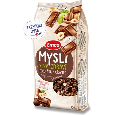 Emco Mysli na Zdraví Křupavé hořká čokoláda 750g Základem dne je snídaně a základem snídaně jsou Emco Mysli na zdraví. Vsadili jsme na ovesné vločky, které jsou považovány za...