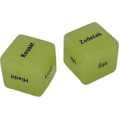 2 hrací kostky, které svítí ve tmě jsou ideálním zpestřením milostného života. Hra je pro dva hráče. Hodem jedné z kostek určíte to co máte dělat a hodem druhé kostky určíte, na...