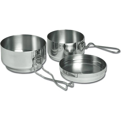 Třídílná turistická sada od značky Mil-Tec. Vyrobená po vzoru vojenské techniky německého Bundeswehru. Jedná se o klasickou sadu hrnce, pánvičky a hrnku. Obsahuje také madlo...