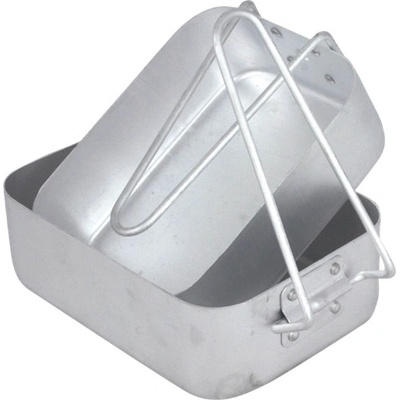 Dvoudílný hliníkový ešus používaný Britskou armádou. Větší miska : 18.5 x 13.5 x 6, menší miska : 16.5 x 13 x 5.5. Výrobce : MIL-COM
