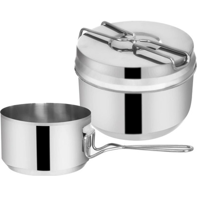 Dva nerezové ešusy o objemu 1,5 l a 0,9 l a víčko jsou nezbytnou součástí pro to pravé táboření v lůně přírody. Vychutnejte si houbový gulášek z kotlíku nebo si nechte nabrat...