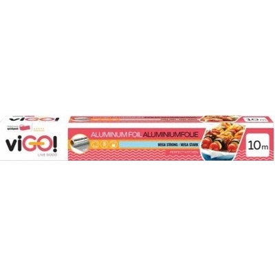 viGO alobal extra silný 15 μ, šířka 29 cm, délka 10 m Alobal role o délce 10 m. Využití alobalu je mnohostranné například na zabalení svačiny, na zabalení neuzavřeného pokrmu atd.