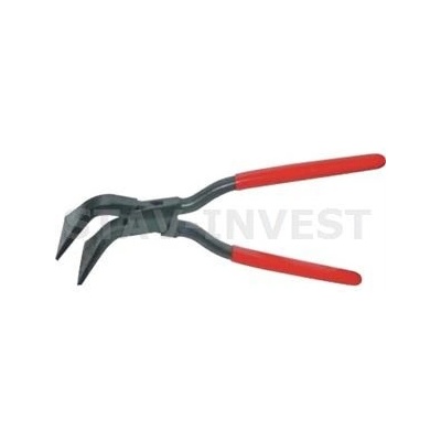 Falcovací kleště malé, ohnuté do úhlu 45°, poplastované rukojeti, boční spoj.