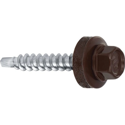 Samovrtný farmářský šroub do dřeva s gumovou těsnící podložkou EPDM, materiál pozinkovaná ocel, lakovaný v barvě RAL 8017 (hnědá). Cena za 1 ks Používá se k uchycení plechových...