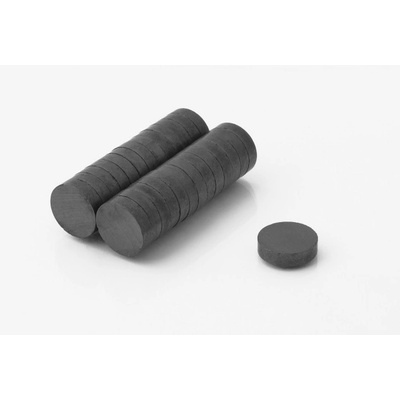 Feritový magnet 10ks MW 15x10 F30Vlastnosti:průměr: 15 mm (±0,1 mm).výška: 10 mm (±0,1 mm).hmotnost magnetu: ~7,95 g.materiál: ferit.směr magnetizace: podél rozměru 10 mm...