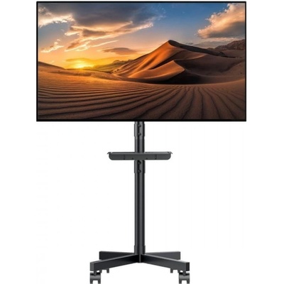 Mobilní a stabilní stojan pro TV a monitory — snadné nastavení výšky, náklonu a praktická police pro příslušenství.