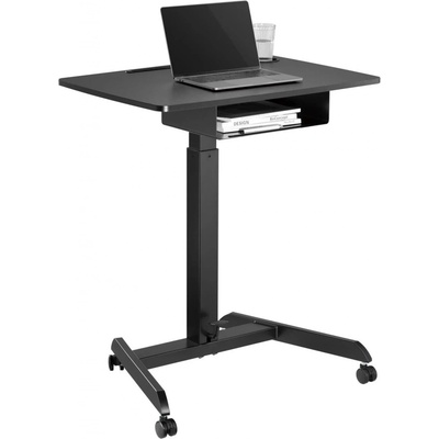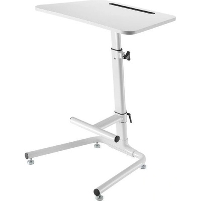 Mobilní výškově nastavitelný stolek pro pohodlnou práci s notebookem — snadno přejde z posezení do stoje a šetří prostor.