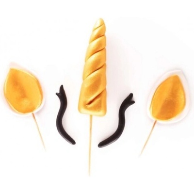 Cukrová dekorace na dort Jednorožec sada. Sada obsahuje ouška, roh, řasy. Složení: bílý cukr, glukózový sirup, cukrárenský tuk, krystalická glukóza, glycerin, regulátor...