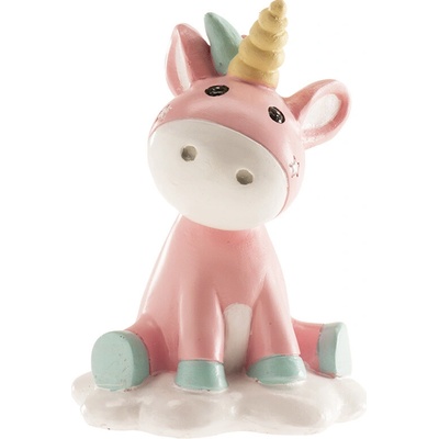 Figurka na dort v podobě růžového jednorožce potěší především děti. Výška 10 cm.