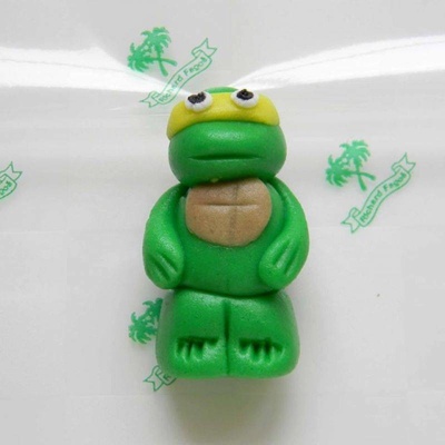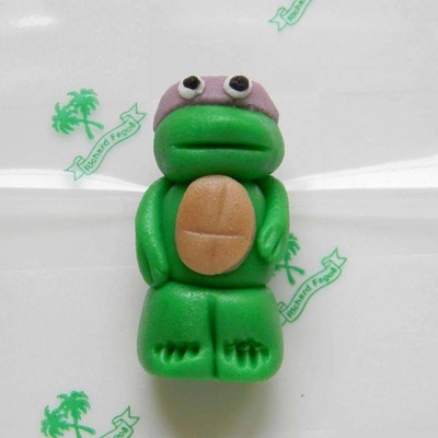 Figurka na dort želva ninja Donatello. Vyroben z kokosové hmoty.