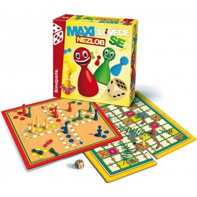 Člověče nezlob se a Lesní závod. Dvě hry v extra velkém provedení, dřevné figurky výška 5 cm, velká dřevěná kosta. Figurky se výborně drží jak těm nejmenším dětem, tak seniorům. Hra obsahuje: oboustranný herní plán, 12 dřevěných figurek, dřevěnou hrací kostku,...