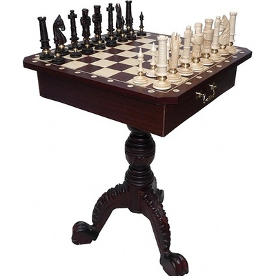 Stůl vyrobený z kvalitního dřeva. Deska stolu je pokryta přírodní mahagonovou dýhou. Šachové figurky jsou zhotoveny z platanového dřeva a jsou zdobeny mosaznou koulí, která...