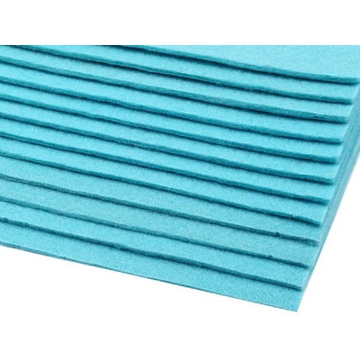 tyrkysový filc ze 100% polyesteru pro výrobu dekorací, loutek, potahů a dekoračních předmětů. Lze jej stříhat, ozdobně prošívat, nebo lepit.