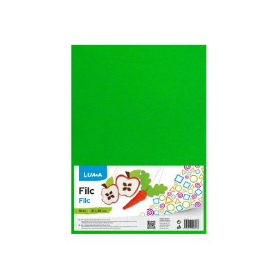 \n\nbarevný filc vhodný pro výrobu dekorací- lze s ním pracovat jako s látkou- lze šít i lepit na papír, dřevo- barva: zelená- rozměr: 21 x 29,7cm- gramáž 180g/m2\n\n