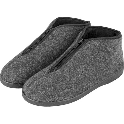 Zimní důchodky dámské Tyto dámské důchodky tmavé jsou tou správnou volbou pro ty, kteří hledají pohodlné filcové pantofle na doma i do vnějšího prostředí. Vnější i vnitřní strana obuvi je pokryta příjemným filcovým materiálem, který příjemně reaguje na dotek s nohou....