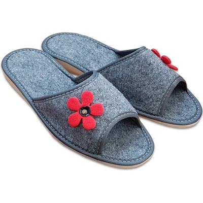 Pantofle filcové dámské otevřené s vyřezávaným vzorem. Materiál: filc, podrážka pryžová