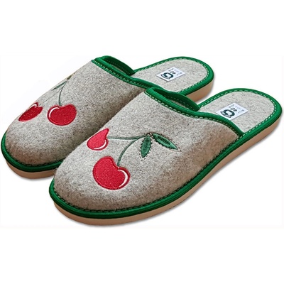Pantofle filcové s uzavřené dámské s třešněmi. Svršek tvoří filc vyrobený ze 100% ovčí vlny. Podrážka je pryžová tlumící s ortopedickým klenutím. Materiál: filc ze 100% ovčí...