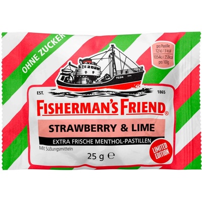 Fisherman's Friend Strawberry & Lime ohne Zucker 25g Ovocné, svěží a překvapivě odlišné – Fisherman's Friend Jahoda a limetka bez cukru kombinují sladkost zralých jahod s pikantní svěžestí limetky. Tyto malé pastilky s vyváženou kombinací chutí poskytují intenzivní...