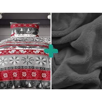 Textilomanie flanel povlečení SNOWY FOREST šedé prostěradlo mikroplyš SOFT 90x200 tmavě šedé