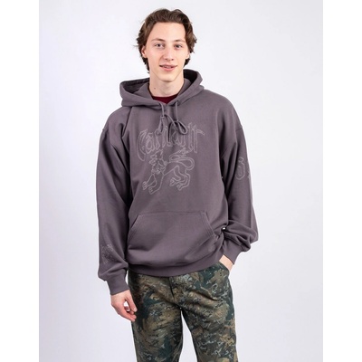 Mikina má volný střih a je vyrobena z těžkého bavlněného žerzeje s kartáčovaným fleecovým podkladem. Mikinu zdobí grafický potisk a výšivka na přední straně. • Materiál: 100%...