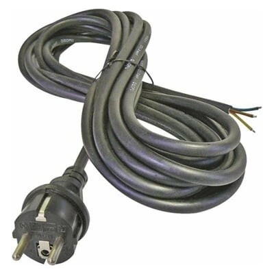 Gumový přívodní kabel H07RN-F3 se 3 vodiči průřezu 2,5 mm2 a délky 2,5 m. Flexo šňůra je na konci opatřena kulatou vidlicí do elektrické sítě s napětím 230V.