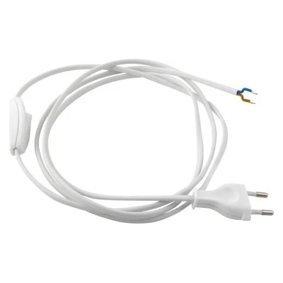 Bílá flexo šňůra s vypínačem, se 2 vodiči průřezu 0,75 mm2 a délky 2m. Flexo kabel je na konci opatřen plochou vidlicí do elektrické sítě s napětím 230V.