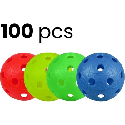 Balení 100ks míčků. Nový florbalový míček s povrchem "hadí kůže" s mimořádnými dynamickými a aerodynamickými vlastnostmi pro profesionální florbal, certifikovaný pro oficiální...