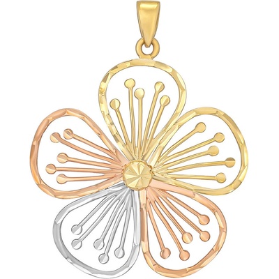 Rozkvetlá elegance ve zlatém provedení. Přívěsek Floréa zaujme svým jemným květinovým designem a kombinací tří odstínů zlata – žlutého, bílého a růžového, vše v kvalitě 14 kt...