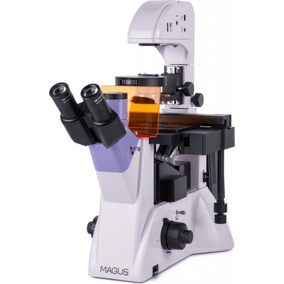 Fluorescenční inverzní mikroskop MAGUS Lum V500 Zvětšení: 100–400x. Trinokulární hlava, rovinné achromatické objektivy, zdroj odraženého světla – 100 W rtuťová výbojka, zdroj...